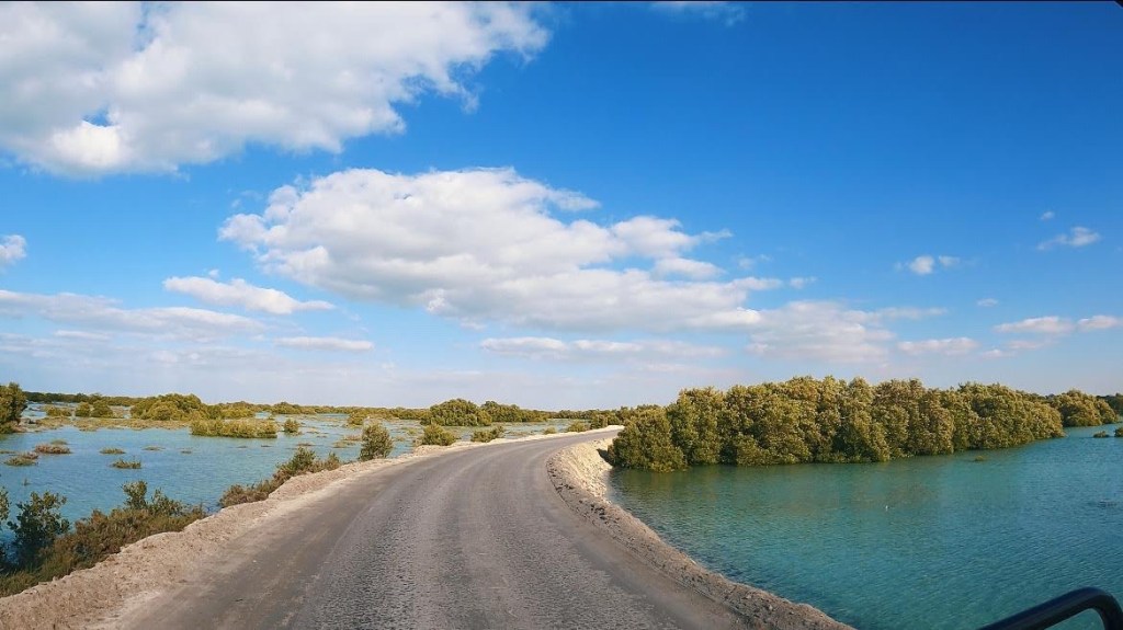أخرج للمشي عند شروق الشمس على الطريق الذي يتوسط المياه والأشجار، يزيد منسوب المياه بعد صلاة الظهر تقريباً ويعود للانحسار عند اقتراب المساء تاركاً خلفه بحيرات صغيرة. الهواء نقيٌ جداً وطازج يتسلل إلى رئتي وأتخيل أن لون حويصلاتي الهوائية يتغير ليصبح كالتّفاح الأحمر الأمريكي -دون أي أساسٍ علمي لذلك بالطّبع-، سكونٌ تامٌ يخلو من أصوات السيارات وأجهزة البناء تتخلله أصوات لطيورٍ لم أسمعها مسبقاً.